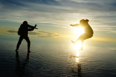 公式ブログで上位3作品を披露しており、いずれもいい吹っ飛び具合の写真となっています。1位は湖で太陽をバックにしたもの。審査員は全員一致で、コンテストのスピリットを真に体現したものだと判断したそう。2位は胴着を着た男性2人による写真。波動拳のポーズがきわめて正確との評価。3位は吹っ飛び方がリアルに見えるアングルから撮られていることと表情が特徴です。