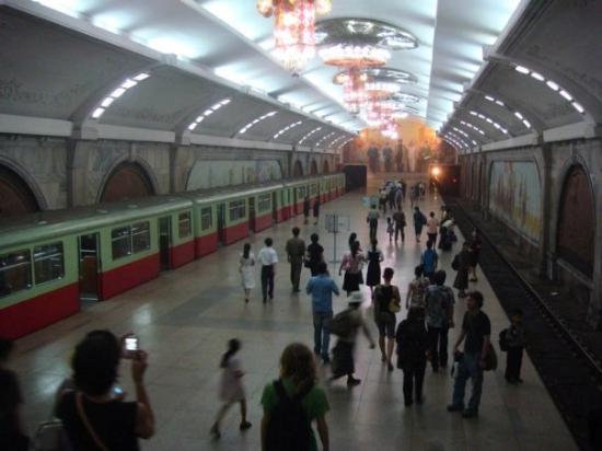 革命を描いた壁画やシャンデリアで飾られた豪華な駅。核シェルターも兼ねている
