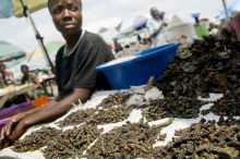 乾燥芋虫を売る女性(コンゴ共和国)
