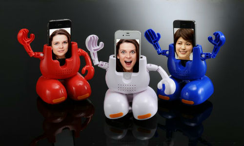 音楽に合わせて踊る! 手足が付いたiPhoneスタンド「踊る!フェイスタンド」