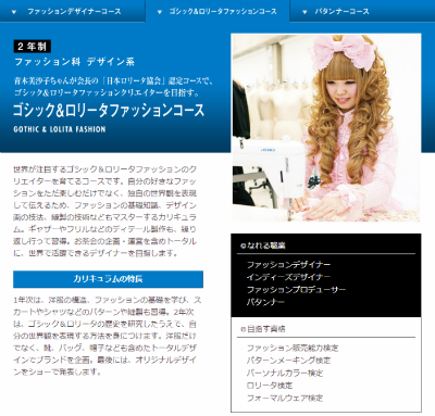 「ゴシック&ロリータファッション」の専門コースが福岡大村美容ファッション専門学校で開講されていた。