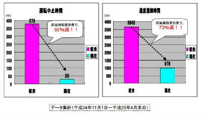 2012年10月までに設置した防風柵の効果で、同年11月から2013年4月の運転見合わせ時間は30分。防風柵未設置の場合は378分のため、92%減少したことになります。また速度規制(低速での運転)時間も、未設置なら3645分のところ、978分と73%減少したとしています。