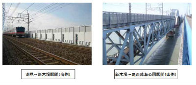 防風柵の設置箇所は潮見駅〜葛西臨海公園駅間、二俣新町〜南船橋駅間。また2007年までに橋りょう部6カ所にも設置されています。