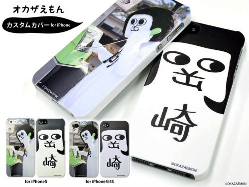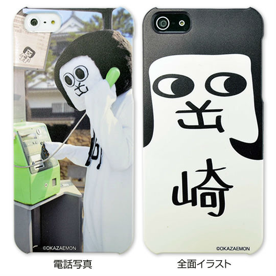 全面にオカザえもんのイラストが入ったモデルと、公衆電話で電話中のオカザえもんの写真がついたモデルの2種類。iPhone4/4S用とiPhone5用があり、いずれも1890円。