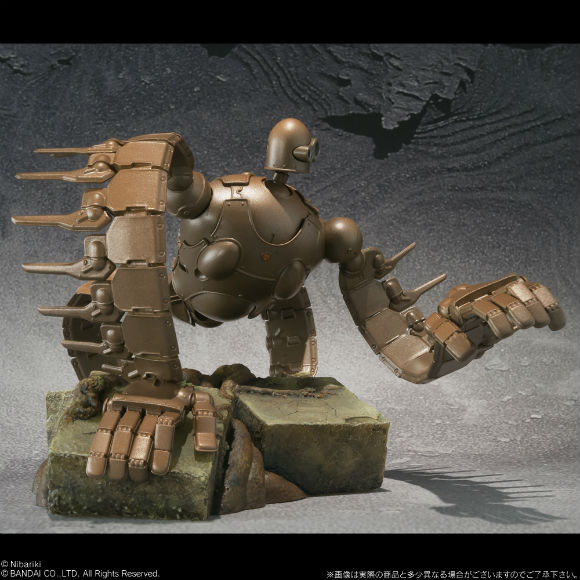 ジブリ作品の独特の世界観をデスクトップモデルで再現する「想造ガレリア」シリーズの第1弾商品。ロボット兵の背中にはラピュタの紋章をアレンジしたデザインを施し、各所にリベットを配した。頭部と左肩部、左手首には可動部分があって腕の角度などを変えられる。