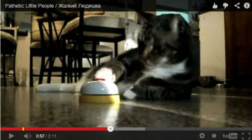 チリーン、ご飯持ってくるにゃ ベルを鳴らして下僕(人間)を呼ぶネコ