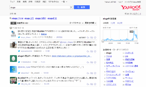 こちらのタイプミスはTwitterで4000リツイートされ、Yahoo!リアルタイム検索の注目のキーワードで、「ELUGA」と「フルHD」が1位・2位に入るなど大人気でした。