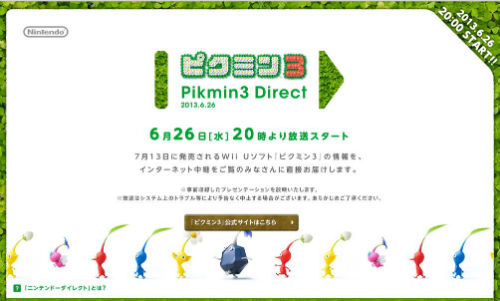 任天堂は6月26日午後8時から、「ピクミン3 Direct 2013.6.26」を配信する。同社Webサイト、ニコニコ生放送、Ustreamで視聴できる。