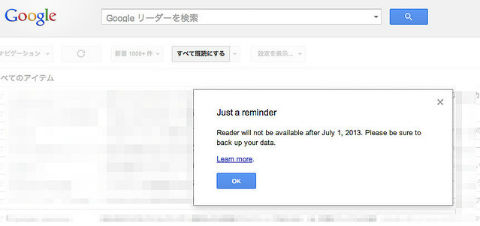 最後に、Googleリーダーは来週月曜の7月1日にサービス終了となり、これらの操作も7月1日以降はできなくなってしまうはずなので、現在まだGoogleリーダーを利用中の人は余裕をもって移行を行うことをオススメする。