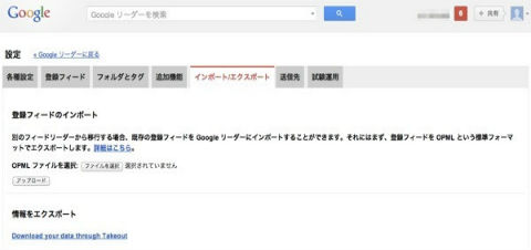feedlyへのデータ移行は無事に完了したが、継続してfeedlyを利用しないかもしれないので、念のためGoogleリーダーの情報をエクスポートする方法も紹介しておく。