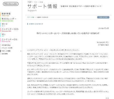 同社は、ゲームデータ改ざんなどによる不具合には対応しないとし、またポケモンのゲーム大会で不正なポケモンを使うと、発覚した時点で失格となり、今後の大会にも参加できなくなると述べている。「プレイヤーの皆様の育てた大切なポケモン、セーブデータを守るためにも、取扱説明書に従った正しい遊び方で『ポケットモンスター』シリーズをお楽しみいただきますよう、よろしくお願いいたします」