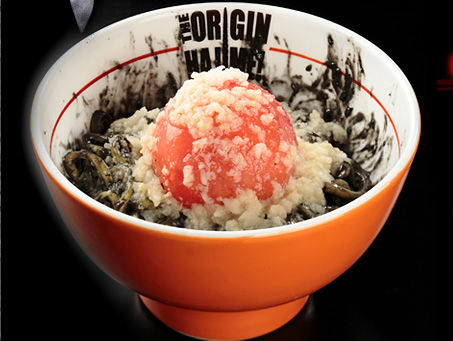 オリジナルラーメン「汁無しMiso・Black」は東京の人気店「らぁめん元〜HAJIME〜」が開発。竹炭を練りこんだ黒い味噌ダレに真っ赤なトマト、背脂などをトッピングした。購入者には、作中に登場するレッドピラミッドシングのレンゲをプレゼントする。価格は2食セットで3200円、4食セットで5200円。7月1〜31日の間、らぁめん元〜HAJIME〜十条店でも1日10食限定で提供する(900円)。