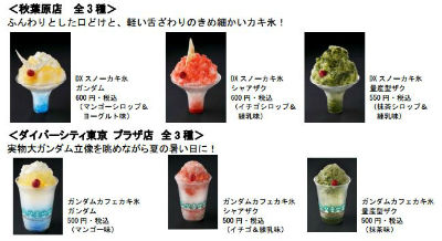 ほかにも夏向けのメニューとして、ガンダムやザクをモチーフにしたテイクアウト用カキ氷「ガンダムカフェカキ氷」(500〜600円)、「スーベニアカップ付 ジャブローソフトクリーム」(1500円)、「ザクとうふ冷奴」(450円)などを提供する。