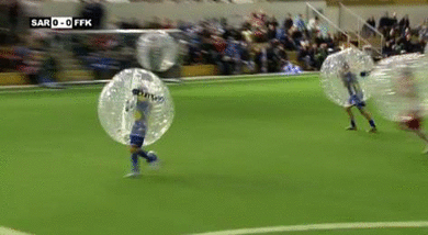 上半身に巨大なビニールのボールをかぶって行う新しいサッカー「バブルサッカー」がやたらと楽しそうです。