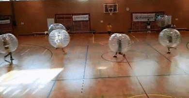 巨大ビニールボールに身を包んだ選手