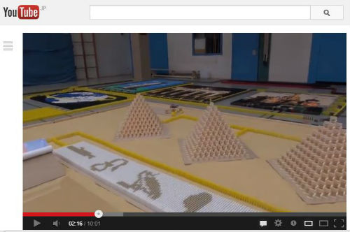 このドミノ倒しイベントは7月中旬にドイツで行われました。「Enjoy Your Life」をテーマに渦巻き状にドミノを並べたゾーン、ドミノで世界各国の名所を表現したゾーン、ドミノでイラストを描いたゾーンなどいくつかのゾーンに分かれており、どれもすばらしいできばえと仕掛けです。