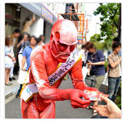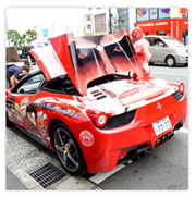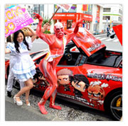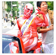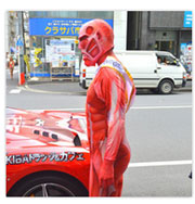進撃の痛フェラーリ、秋葉原に登場! “小さな”超大型巨人も駆けつける!