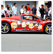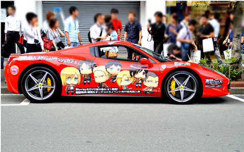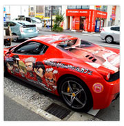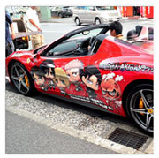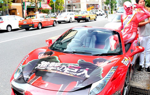 2013年7月17日、4月より放映中のTVアニメ「進撃の巨人」の登場キャラクターイラストをラッピングした“痛フェラーリ”が、東京・秋葉原の「AKIBAドラッグ&カフェ」前の路上で披露された。車体は、価格4000万円の「Ferrari 458 Spider」。
