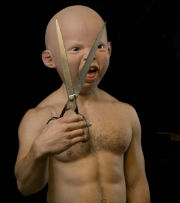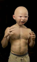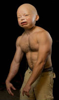 大人のボディ+赤ちゃん顔のマスク=ホラー映画のキャラみたい。