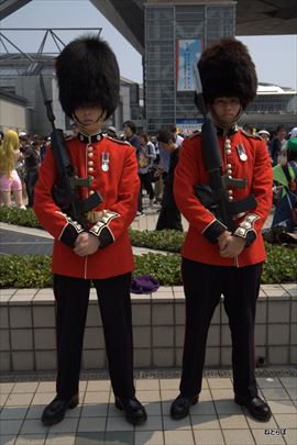 英国近衛兵(左)、「Wii Fit」のトレーナー(右)