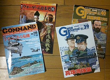 平成の日本ウォーゲームを支える2大専門誌。左は国際通信社の「コマンドマガジン」とその別冊として隔月に発行している「ウォーゲーム日本史」で、右はゲームジャーナルの「ゲームジャーナル」だ。太平洋戦争海戦当時の連合軍のように、長い苦難のときを耐えに耐え、日本のウォーゲーマーを支えてきた貢献は大きい