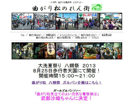 八朔祭りは毎年夏の終わりに大洗磯前神社にで開かれ、商店街が歩行者天国となって山車巡行や模擬店などが行われます(24日にも山車巡行のみ行う)。今年はさらにガルパンにちなみ、「第1回 曲がり松ラジコン模型戦車道」「曲がり松八朔祭り特別開催! ガルパン痛チャリ選手権」を実施。