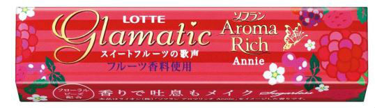 ロッテは9月3日、ライオンの衣料用柔軟剤「ソフラン アロマリッチ Annie」の香りをイメージしたガム「グラマティック〈スイートフルーツの歌声〉」を発売する。