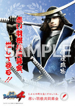 ポスターは、戦国BASARA4の伊達政宗と「赤い羽根共同募金、推して参る」のキャッチコピーを配したデザイン。グッズはクリアファイルで、裏面に新キャラを含む4人の武将を掲載している。10月から始まる募金運動の啓発や寄付のしるしとして活用する。