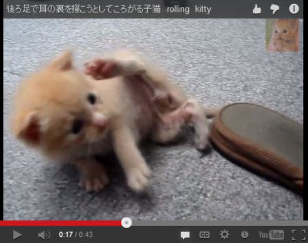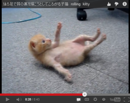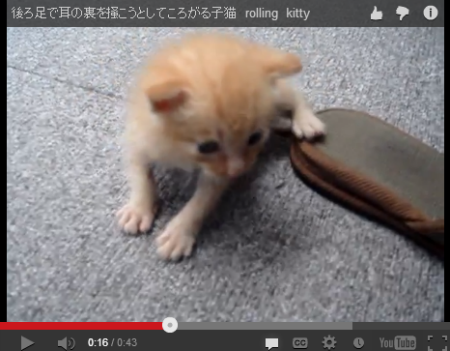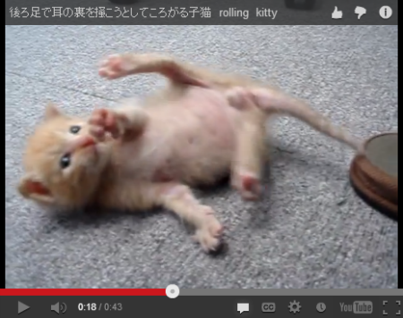 耳の裏をかこうとする子ネコの動画が、YouTubeに投稿されています。後ろ足を懸命に伸ばすも、耳に届かなくてゴロン。そんな回転しちゃう子ネコの姿にキュンときます。