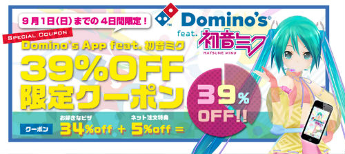 ミクさん誕生記念 ドミノ・ピザが4日間限定で39%オフクーポン提供