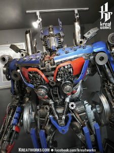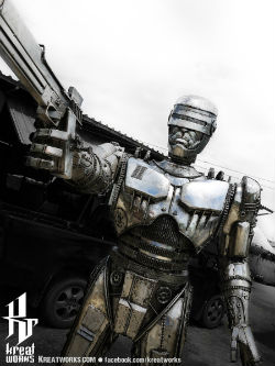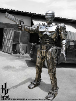 どちらもオーダーメイドで、リサイクルした金属や不要な車のパーツなどを使って制作。サビ防止のコーティングも施されています。エイリアンは2.2×2×1.1メートルで重さは約280キロ、価格は6900ドル。ロボコップは2.5×1.5×1.1メートルで6400ドルとなっています。