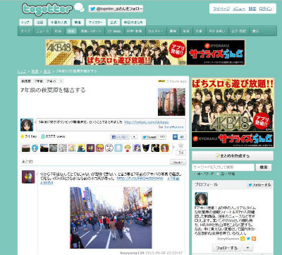 また五輪開催が7年後であることから、「#7年前」ハッシュタグも登場。7年前に自分が何をしていたのかや、当時のニュースを回顧している人が多く見られました。「7年前の秋葉原を懐古する」というまとめもできています。