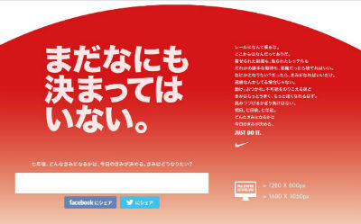 またナイキは東京五輪開催を受けて特設サイトを開設。7年後にどうなりたいかを「#JUSTDOITJP」ハッシュタグつきでFacebookやTwitterに投稿することができます。