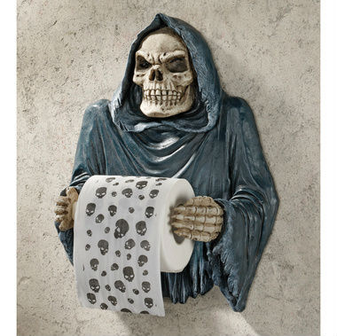トイレで魔王の気分 死神がトイレットペーパーを捧げ持つホルダー