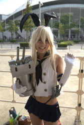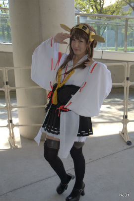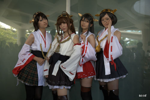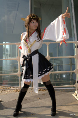 左:金剛さん。ちなみにゲームショウのコスプレ規定で50センチ以上のアイテムの持ち込み禁止のため、1メートルある金剛(軍艦)は持ってこれなかったとのこと 右:同じく金剛さん、決まってます
