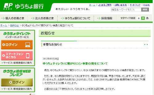「ゆうちょダイレクトに繋がりにくい事象の発生について」