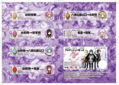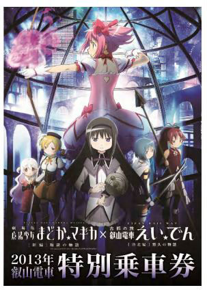 京都の叡山電鉄は、「劇場版魔法少女まどか☆マギカ[新編]叛逆の物語」のキャラクターを使った特別乗車券を発売する。