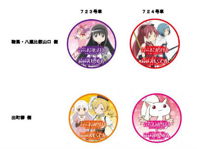 10月11日からは、キャラを採用したヘッドマークをつけた車両を運行する。723号車にまどか&ほむら」「マミ&なぎさ」、724号車に「さやか&杏子」「キュゥべえ」のヘッドマークを搭載。運行は来年3月末ごろまで。
