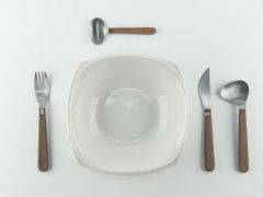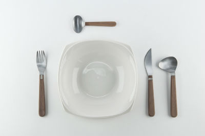First Date Cutleryはスープ用スプーン、フォーク、ナイフ、デザート用スプーンのセット。スープ用スプーンは横に出っ張った形をしており、こぼれたり、すする音が出るのを防ぎます。ナイフとフォークには磁石がついており、すぐに交差するようになっています(ナイフとフォークを交差させて皿に置くと「食事中」のサイン)。これで食べるのに夢中になりすぎずに、食事の合間に会話を楽しむことができるというわけです。