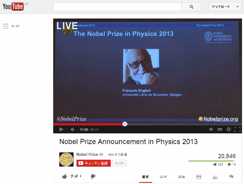 ちなみにノーベル物理学賞の発表は予定より1時間ほど遅れて始まっており、これはヒッグス氏と連絡がつかなかったためではないかとみられていますが、選考委員会は「コメントできない」としています。