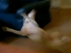 部屋へ駆け込んできたブルテリア(?)らしきその犬は、そのまま手前のソファーめがけてジャンプ! ……とおもったらフローリングに足を滑らせ、仰向けになりながらソファーに激突します。あわてて立ち上がりカメラを目をやると、そのままいそいそと退出。勝手に派手に転んで決まり悪そうにする犬に、撮影者もつい噴き出してしまいました。
