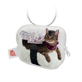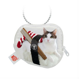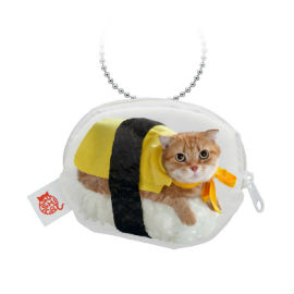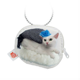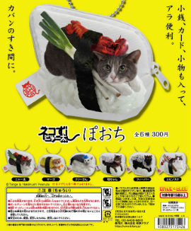 シャリにネコとネタを載せた「ネコずし」が、小銭などが入るポーチになってガチャに。