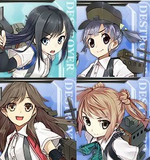 「朝潮」「大潮」「満潮」「荒潮」は、いずれも朝潮型の駆逐艦だ。太平洋戦争開戦当時、4人ユニットの「第8駆逐隊」を編成していた。1942年1月から第2艦隊第2水雷戦隊という、水雷戦のトップチームに所属していた彼女たちは、マレー、フィリピン、ボルネオの攻略船団を連続して護衛する。お疲れさまー。