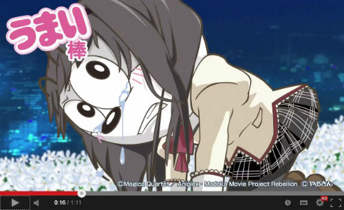 2013年11月2日からナムコのゲームセンター限定で登場予定のクレーンゲーム景品「劇場版 魔法少女まどか☆マギカ[新編]叛逆の物語 うまい棒(全2種)」をPRするためとはいえ、キャラ崩壊寸前まで攻める全力っぷりはさすがとしか言いようがないですね。