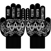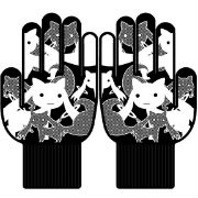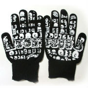 魔法少女まどかマギカの軍手。左からソウルジェム柄、魔女文字柄、キュゥべえ柄