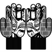 進撃の巨人の軍手。左から巨人柄、調査兵団柄