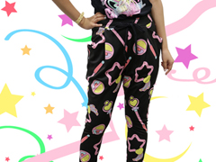 黒いサルエルパンツに魔法のコンパクトや魔法のステッキ、ルミナスターなどをプリントした。秋冬向けの厚めの生地を使用。ヒップ部分が大きめ、ひざ下部分が細めのデザインでスタイルアップ効果もあるとしている。サイズはM、Lの2種類。予約は準備数に達し次第終了。商品の発送は12月を予定している。