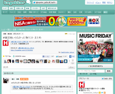東日本大震災から約2年8カ月が経った今、Twitterでハッシュタグ「#被災地いらなかった物リスト」が話題になっていました。Togetterのまとめは2日ほどで20万viewを突破しています。