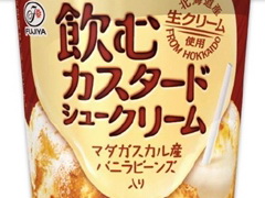 「飲むシュークリーム」は、シュー皮の中にとろとろのクリームをたっぷり詰めた、ストローで飲むタイプのシュークリームとして2012年に発売した。そのおいしさをそのままドリンクに仕立てた。そのまま飲むだけでなく、シリアルやヨーグルトにかけたり、また、パンケーキにかけて手軽なスイーツとしても楽しめる。180グラムで価格は168円。