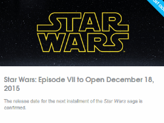 「スター・ウォーズ」シリーズの最新作「Star Wars: Episode VII」の公開が、2015年12月18日に決定した。